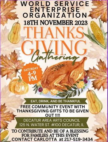 - Thanksgiving FeastSat, Nov 16125 N Water St, Decatur, IL 62523, USA